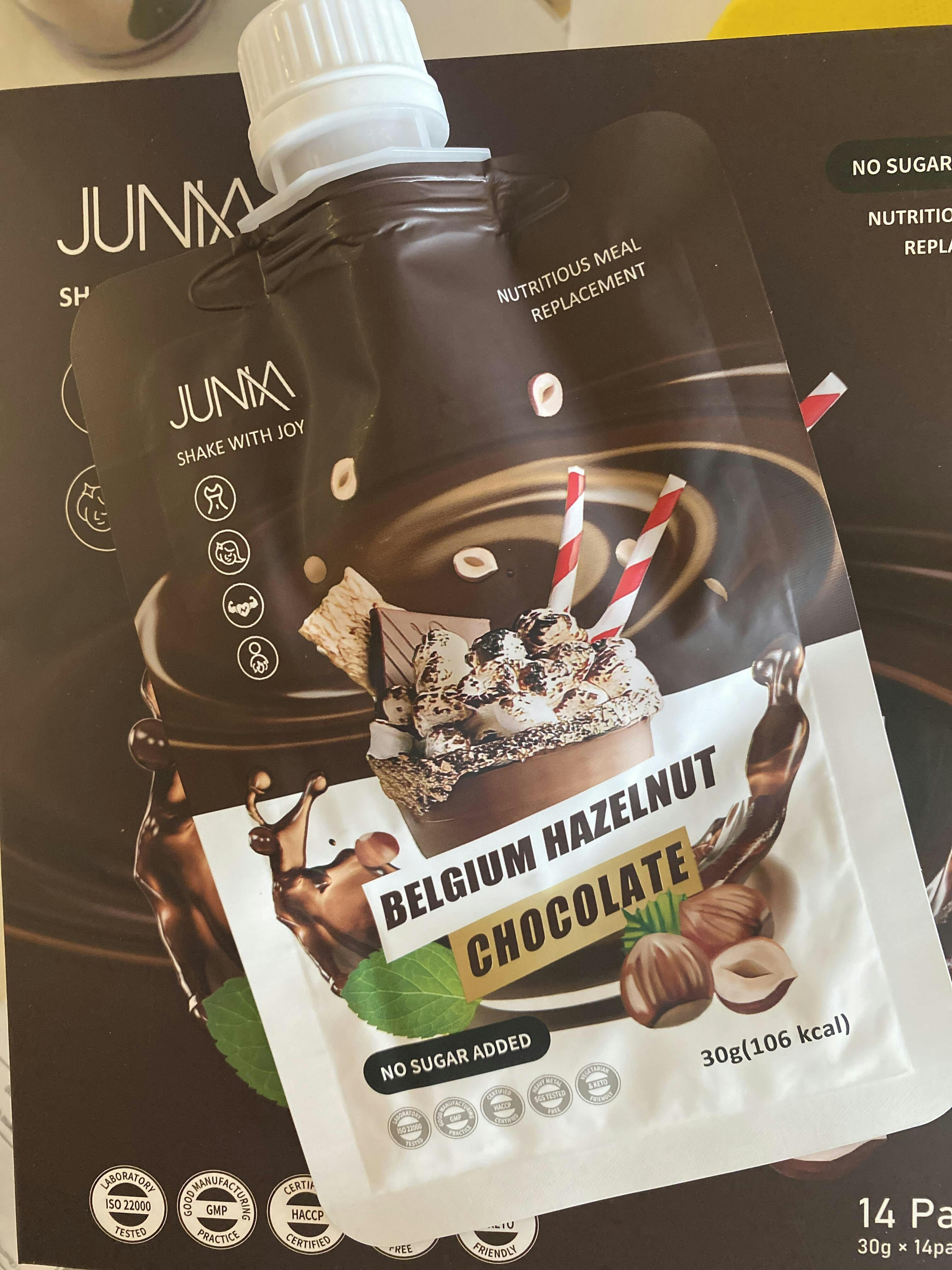 每盒14包,一餐一包,每包獨立吸嘴袋設計,不須使用任何容器,隨時隨地加水/牛奶即可飲用。