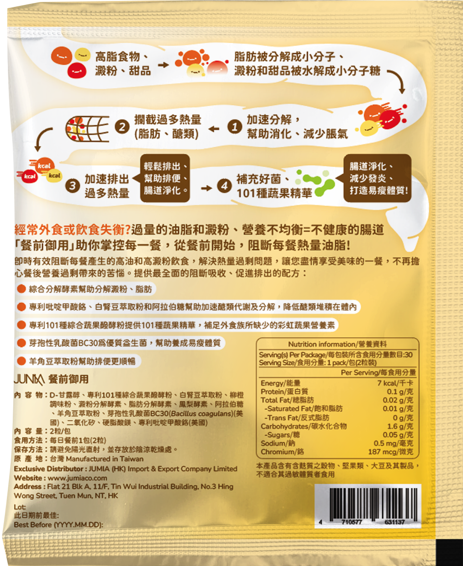 餐前御用™口嚼片(Premeal Block™) 1盒30包 - K.O.每餐油澱糖!
